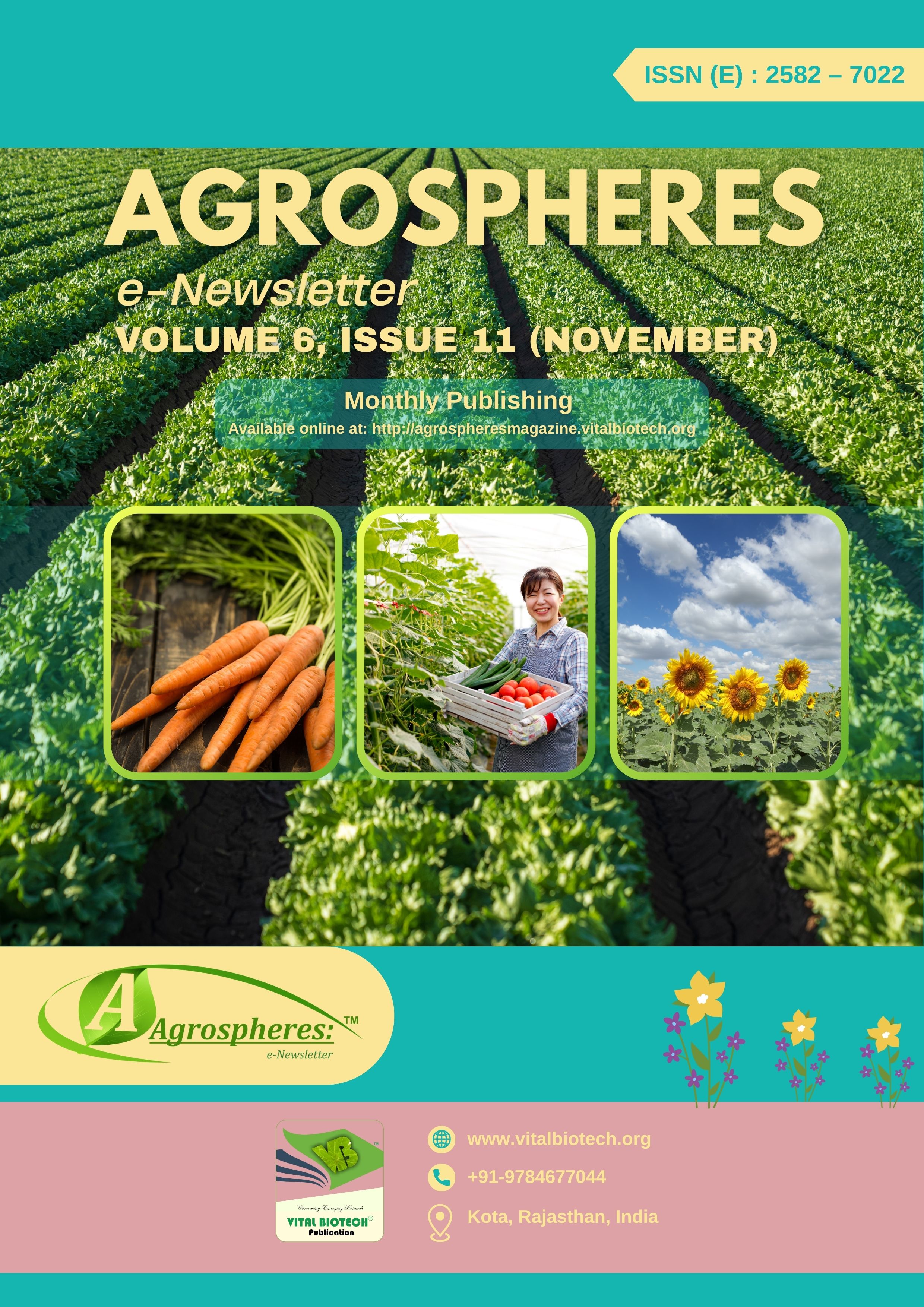 Agrospheres: e-Newsletter is an open access, peer-reviewed, monthly, online magazine cum e-newsletter covering all aspects of Agricultural Sciences. The aim of Agrospheres: e-Newsletter is to publish latest information in field of Crop Sciences, Horticulture Sciences, Animal Sciences, Fisheries Sciences, Natural Resource Management, Plant Protection, Agricultural Engineering and Technology, Social Sciences. This would help in disseminating scientific information and latest findings among the scientific community all over the globe.